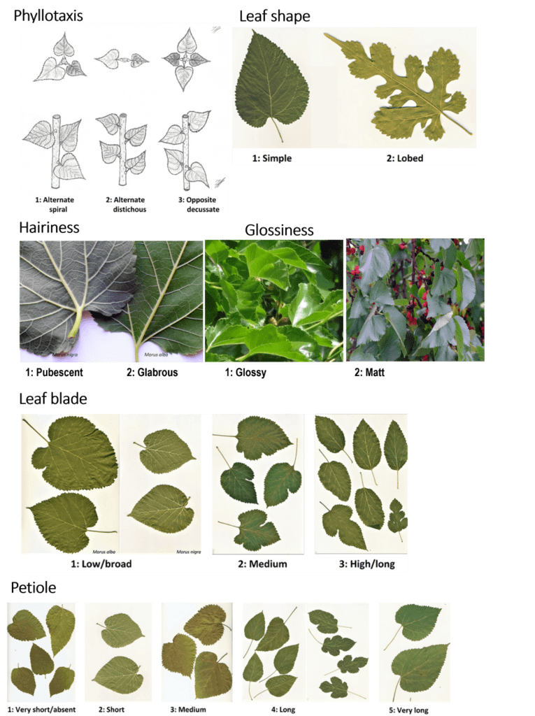 Figure 2: Morphological characterization of the leaves. Phyllotaxis, leaf shape, hairiness, glossiness, leaf blade, petiole.