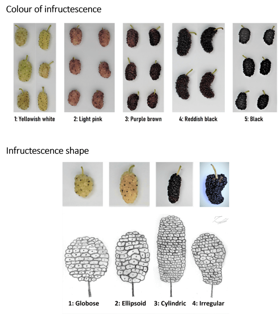 Figure 5: Morphological characterization of the reproductive structures. Colour of infructescence, infructescence shape.
